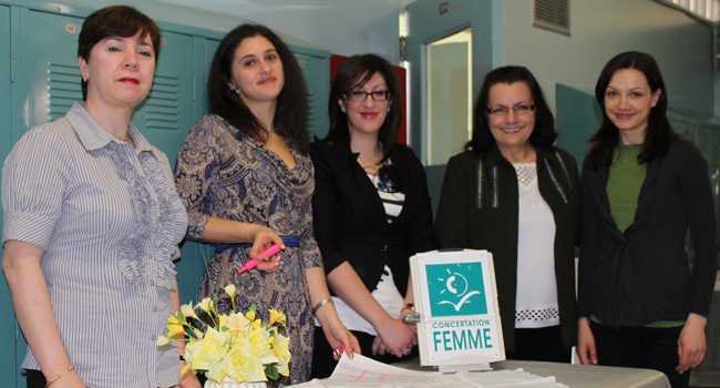 Le lundi 5 mars 2012, Concertation-Femme a célébré la Journée internationale des femmes et son 29e anniversaire en présence de plusieurs élus : Mme Christine St-Pierre, députée de l’Acadie, ministre de la Culture, des Communications et de la Condition féminine, Mme Maria Mourani, députée d’Ahuntsic, M. Pierre Gagnier, maire d’Ahuntsic-Cartierville, M. Harout Chitilian, conseiller de Bordeaux-Cartierville, Madame Jocelyn Ann Campbell, conseillère de Saint-Sulpice et M. Étienne Brunet, conseiller de Sault-au-Récollet. Plusieurs partenaires institutionnels et communautaires, représentants de médias ainsi que nombreux invités étaient présents à la célébration.